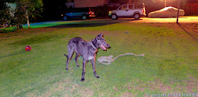 Above, what the modern dog showperson does in downtime, (in my case besides encroaching on the bivouac of Borzoi owners Ian and Sherry O'Connor. Lebensraum!) Gia relaxes, Sarahbelle basks. Guest photographer © 2015 Kurt Ingham.